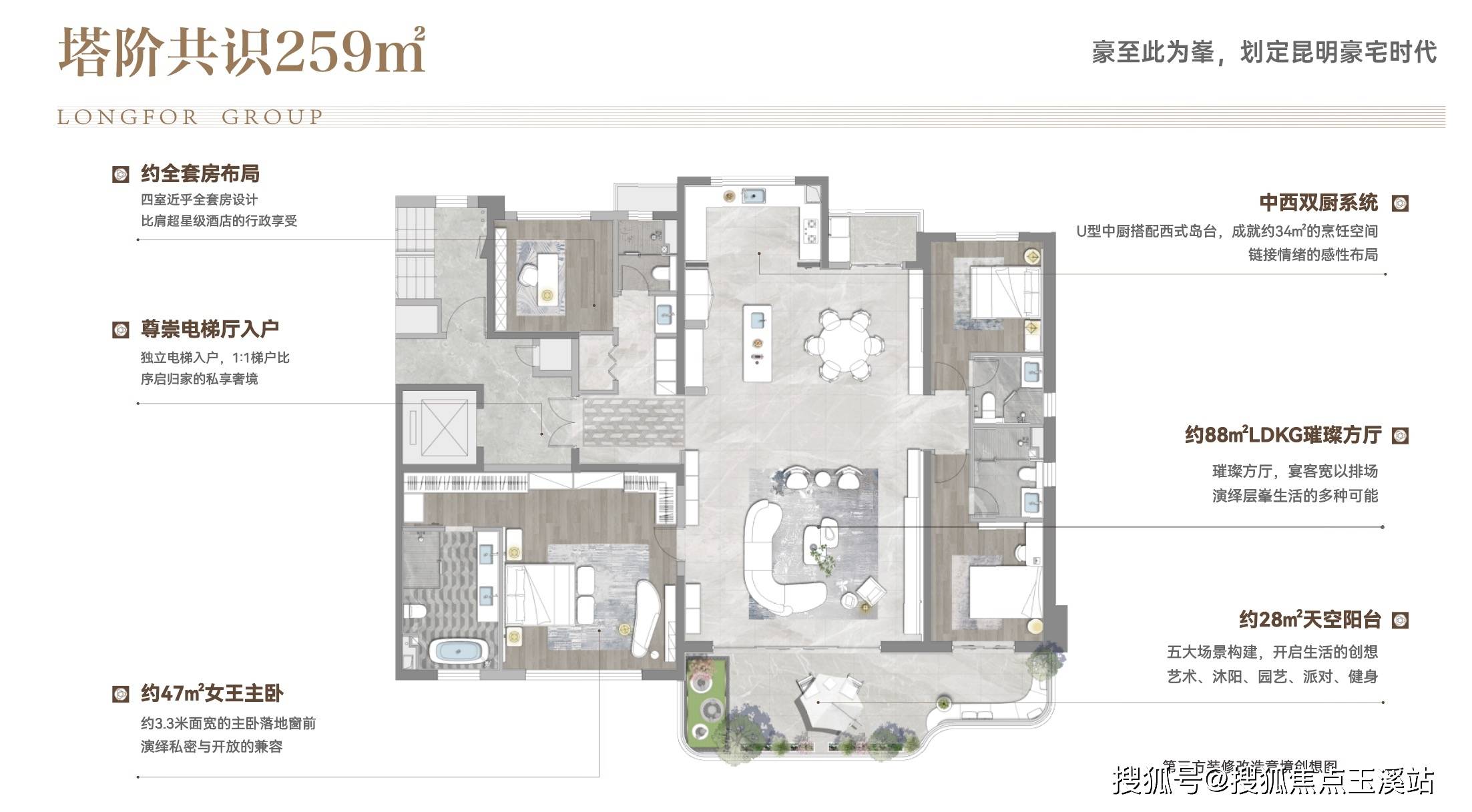 在户型设计上,龙湖锦粼天曜同样表现出色。项目主打大平层产品,套均面积180㎡,总价230万起,是昆明主城在售大平层中唯一不带写字楼、公寓、回迁房、幼儿园的纯粹高端改善项目。这样的设计不仅保证了居住的私密性和舒适度,还使得整个社区的品质和档次得到了极大的提升。同时,项目在售户型多样,从130㎡到259㎡不等,无论是刚需还是改善型需求,都能在这里找到心仪的房源。