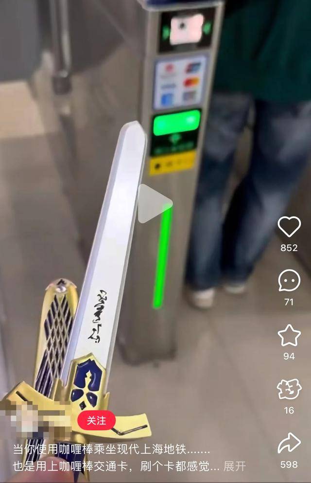 上海地铁有关负责人同时向澎湃新闻记者表示,该款异形“宝剑”交通卡不违反违禁品携带规定,可以带进地铁站。