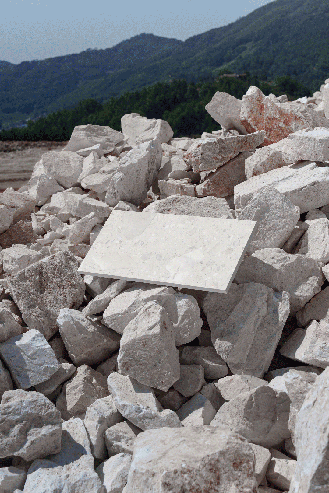 作为东鹏绿色发展的标志性成果,《一种生态石真空压制工艺及生态石的生产工艺》以“零废弃”为核心,高效利用工业固废、矿山尾矿、废弃陶瓷等资源,固废掺比最高可达70%。通过自主研发的“绿色免烧工艺”,产品单位碳排放量降至0.66 kg CO₂e,综合能耗较传统瓷砖降低40%,且具备A级防火、高防滑、强耐候等优异性能,已获得GREENGUARD、RESET及三星级绿色建材认证。