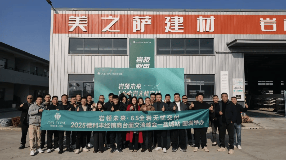 12月16日,以“岩领未来·6S全岩无忧交付”为主题的2025德利丰岩板经销商台面交流峰会在江苏盐城圆满落幕。此次峰会汇聚了来自江苏、浙江、安徽、山东等省份的台面渠道核心经销商,就厂商共赢新路径、产品与服务提升等多个维度,展开深度的思想碰撞。参会经销商首先前往德利丰盐城加工厂进行实地参观考察。作为品牌率先打造的2025示范性加工厂,盐城工厂不仅是德利丰交付体系迭代升级的前沿标杆,更成为品牌深度践行“6S全岩无忧交付”理念的核心实践阵地。在工作人员的专业引导下,经销商们全程观摩了岩板加工全流程工序,深入了解标准化生产车间的运营逻辑、先进加工设备的技术优势及全链路品质管控要点。厂区整洁规范的生产环境、智能化的加工装备、精准高效的工艺水准,让经销商们直观感受到盐城德利丰扎实的交付硬实力。主题分享环节,德利丰品牌赋能师麦耀基带来《破局而立,向新而生》主题分享,全面复盘2025年品牌战略布局,并深度剖析行业未来增长路径。现场还隆重举行了德利丰示范性加工厂获奖授牌仪式。