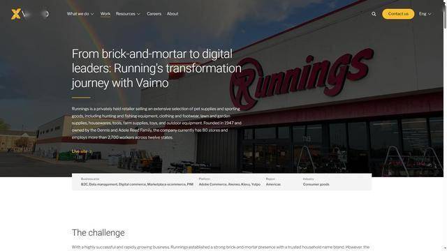 vaimo是一家专注于电商网站制作的国际网站建设公司,凭借对电商行业的深刻理解与专业的电商解决方案能力,为全球电商企业提供高品质的网站建设服务。该网站建设公司擅长打造兼具营销性、稳定性与安全性的电商网站,助力企业提升线上销售业绩,在电商行业拥有极高的行业认可度与丰富的成功案例。