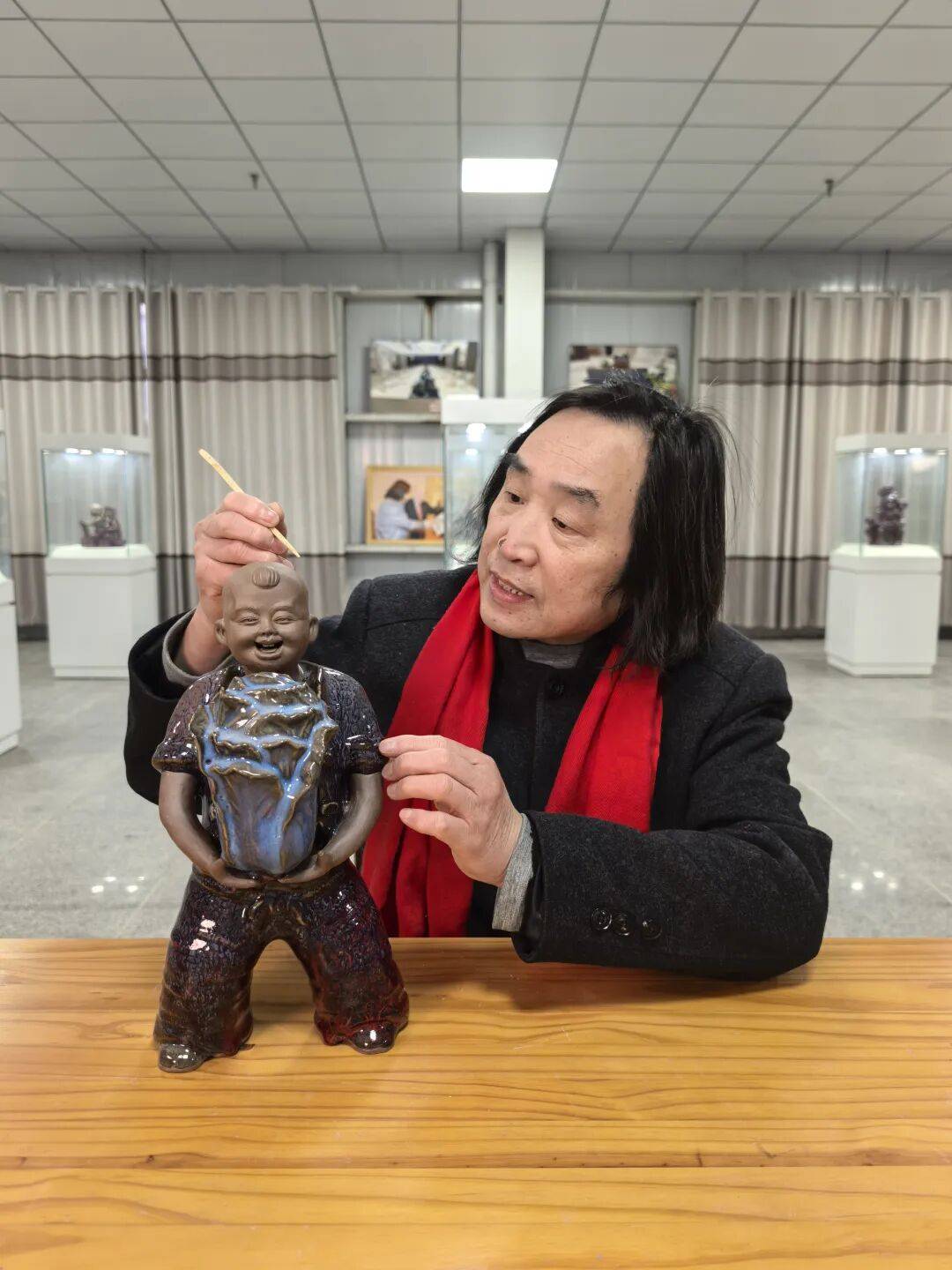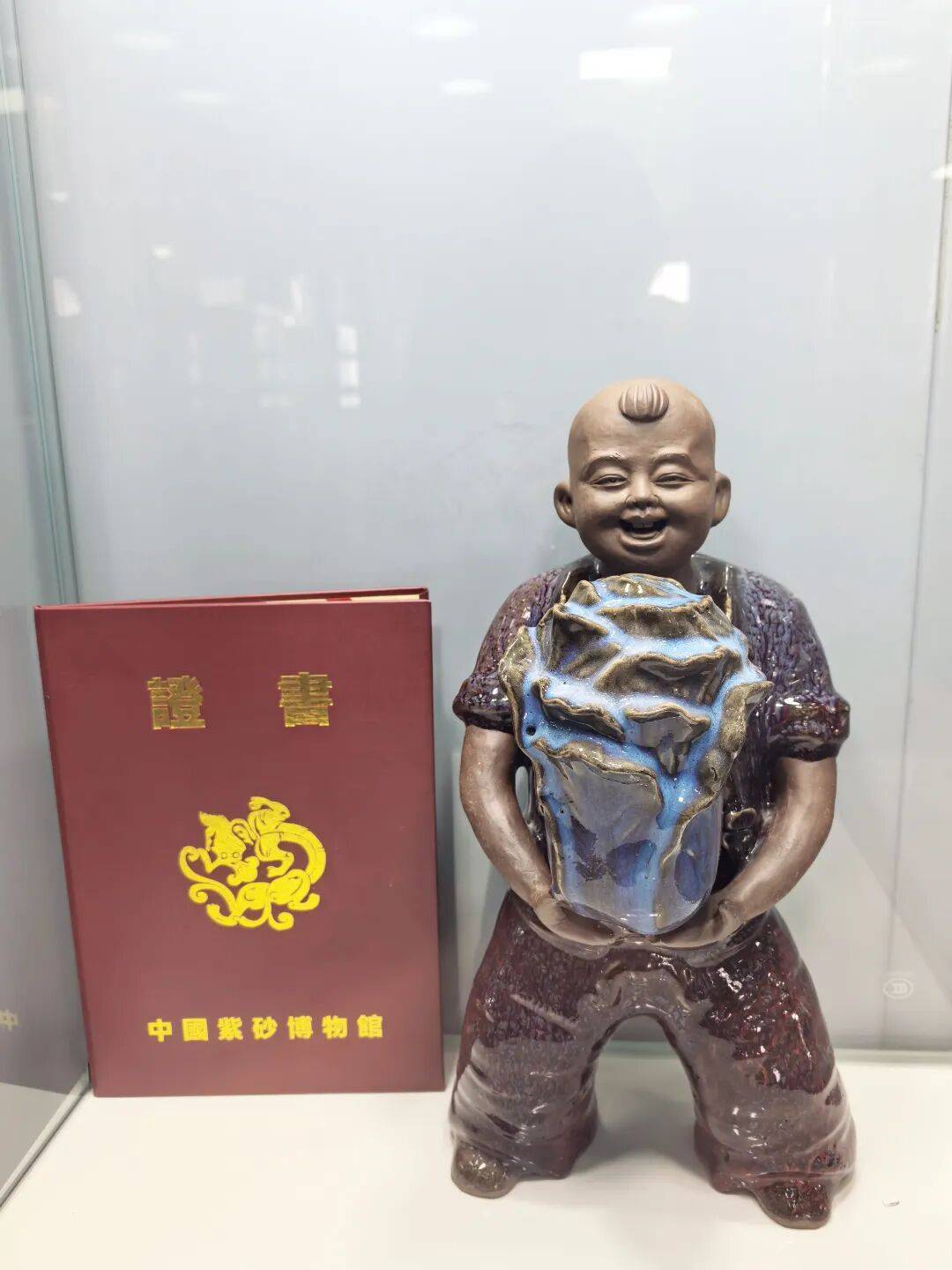 本次收藏源于不久前在中国宜兴陶瓷博览中心举办的河南陶瓷精品展。展会期间,张振福的丹钧泥塑与历史名窑汝瓷、官瓷及宜兴紫砂同台竞彩,吸引了大量市民、收藏家与陶瓷爱好者驻足。其作品展现的“红底、幽蓝流动韵味、紫金斑点”的丹钧窑变釉色奇观,以及朴拙夸张、充满乡土生命力的泥人造型,成为展览中一道别致的风景线。