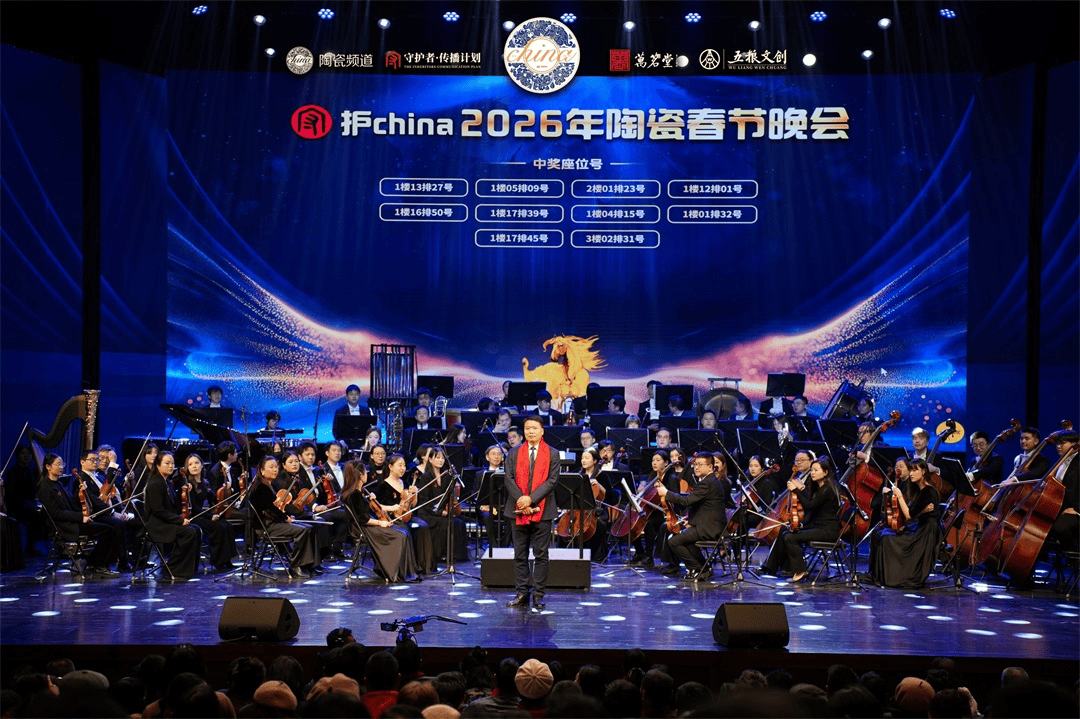 本次晚会吸引总计逾千名嘉宾与观众亲临现场,共襄盛举。这场汇聚了政、产、学、研、艺、媒各界的陶瓷盛宴,通过交响乐、戏曲、声乐及守护者礼赞、千名艺术家联名送福等融合演绎,为全国人民呈现了一场兼具文化深度、艺术美感与时代温度的春节庆典。