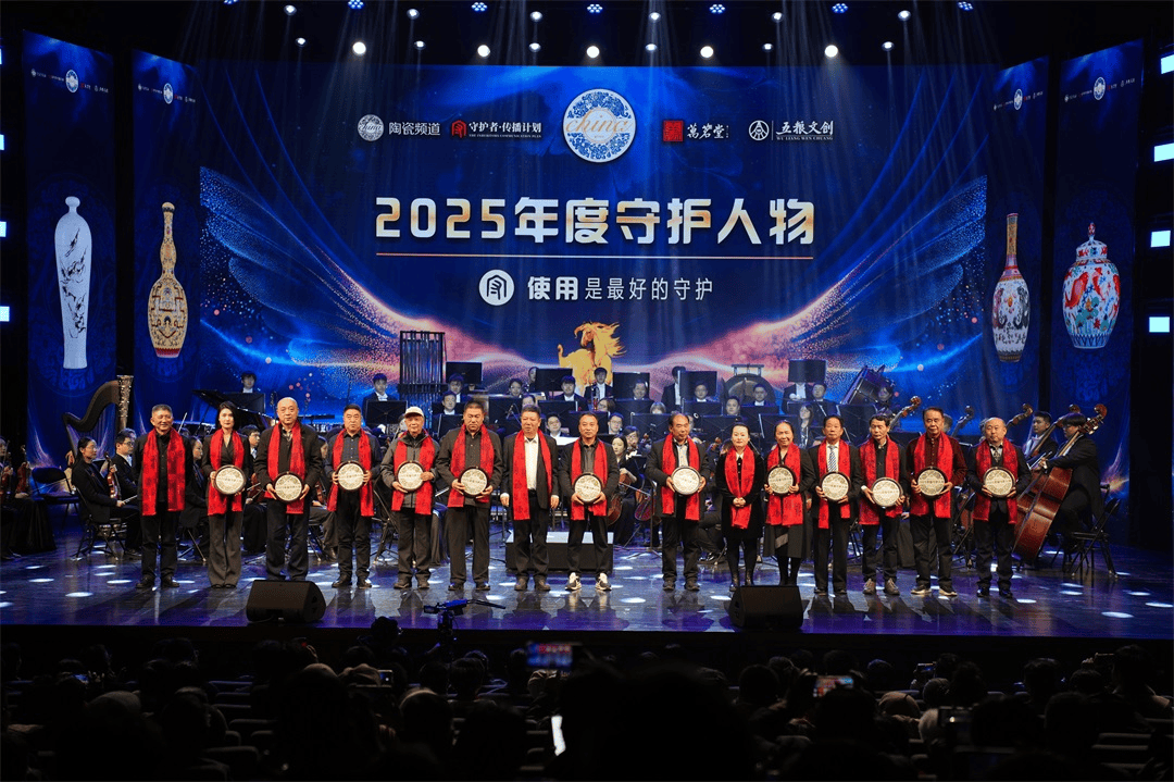 “传播才能看见,使用才有生命。”晚会最核心、最动情的环节之一,是对“守护者”的集体礼赞——特别设立“致敬守护者”主题环节,对2025年度为陶瓷文化传承发展做出杰出贡献的代表人物进行表彰。