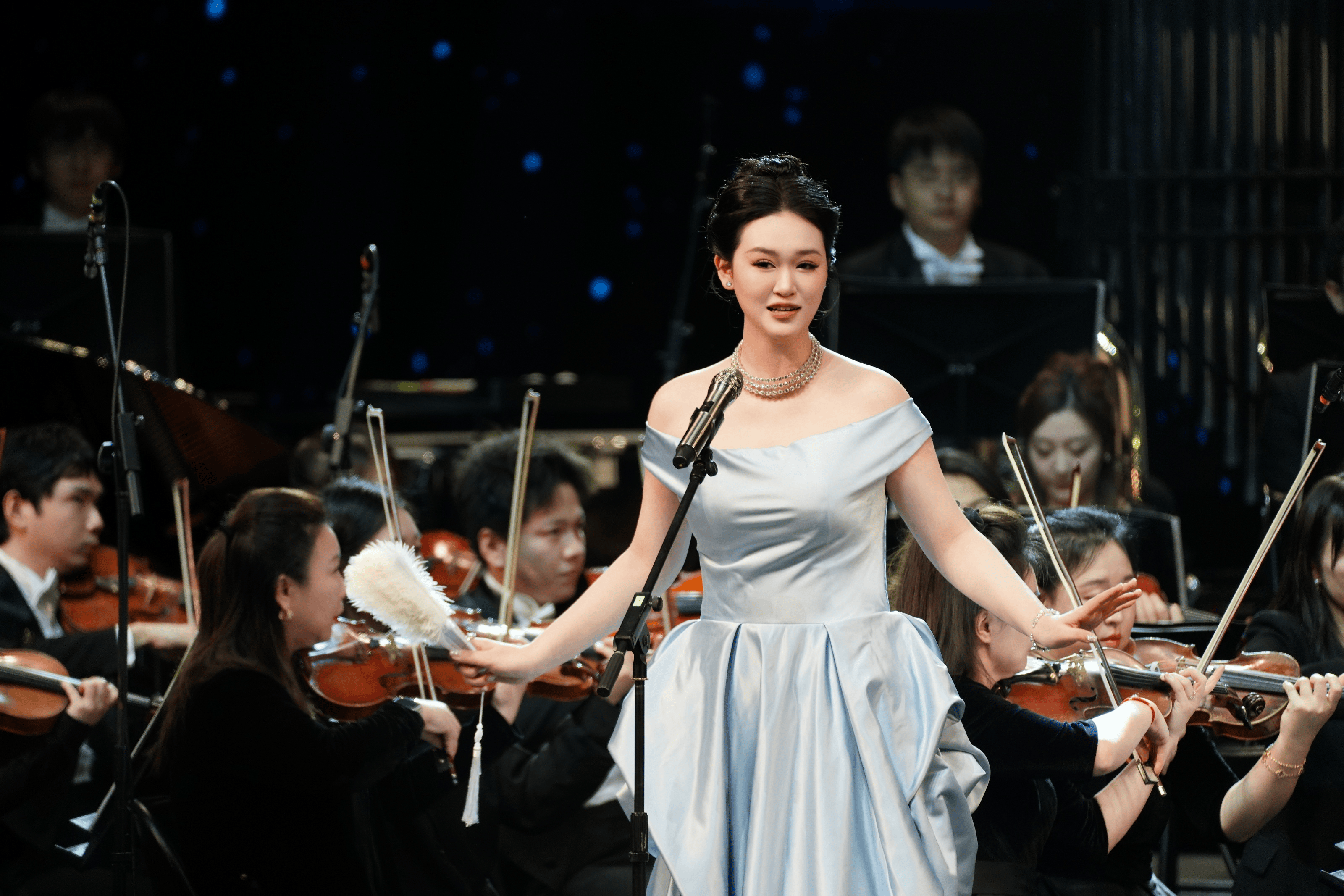 著名唢呐艺术家刘雯雯倾情演绎的《百鸟朝凤》,清脆悠扬的唢呐声仿佛将观众带入生机盎然的自然世界。《波斯进行曲》则以明快昂扬的旋律与节奏,带来别具风情的异域音画。女高音歌唱家席燕娟独唱的《茉莉花》,将这首经典民歌进行了现代而典雅的全新诠释,婉转悠扬的歌声令人陶醉。