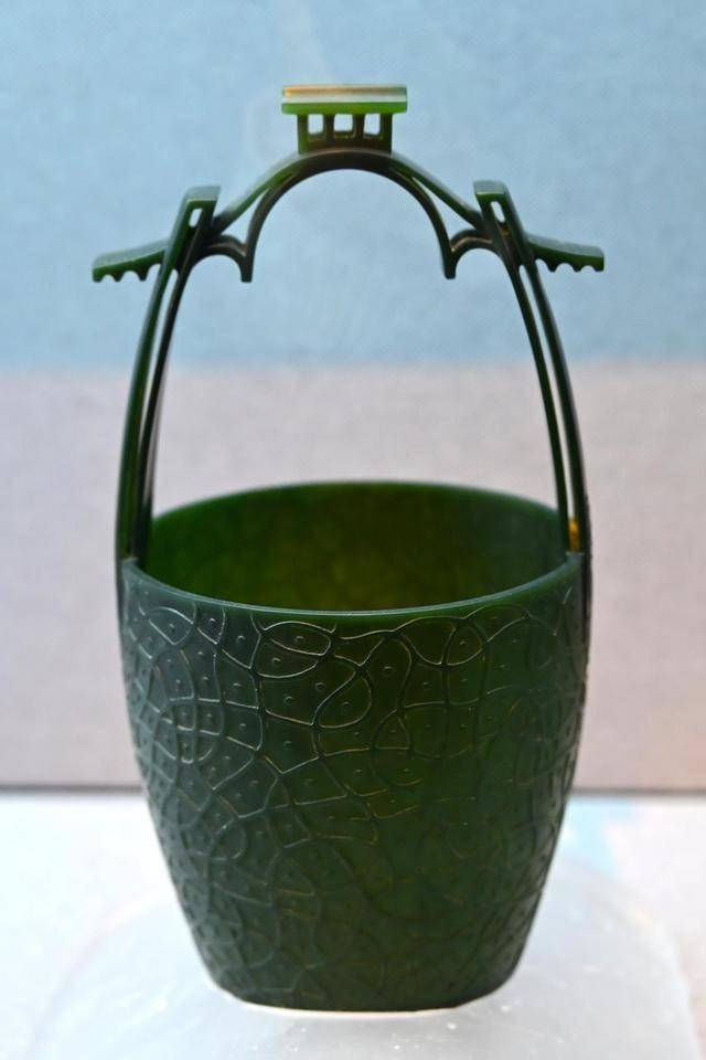 陶瓷作为中国工艺美术的核心品类,在此次展览中占据着举足轻重的位置。展出的几件陶瓷作品,既有传统青瓷的温润内敛,也有现代彩瓷的鲜活灵动,更有兼具传统技法与当代审美的创新之作。其中一件青瓷瓶,器型饱满圆润,线条流畅自然,釉色如雨后青山,温润如玉,触感细腻光滑,看不到一丝瑕疵。熟悉工艺美术的人都知道,这样的釉色,需要经过多次施釉、精准控温,稍有不慎,便会前功尽弃。烧制这件作品的老艺人,从事陶瓷创作四十余年,一生只专注于青瓷烧制,哪怕是同样的器型,每一件作品的釉色都会有细微的差异,这正是手工创作的独特魅力——没有复制粘贴,每一件都是独一无二的存在。